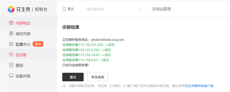 您甚至可以在花生壳控制表上进行在线诊断,并联系客户服务,以便进一步释放。