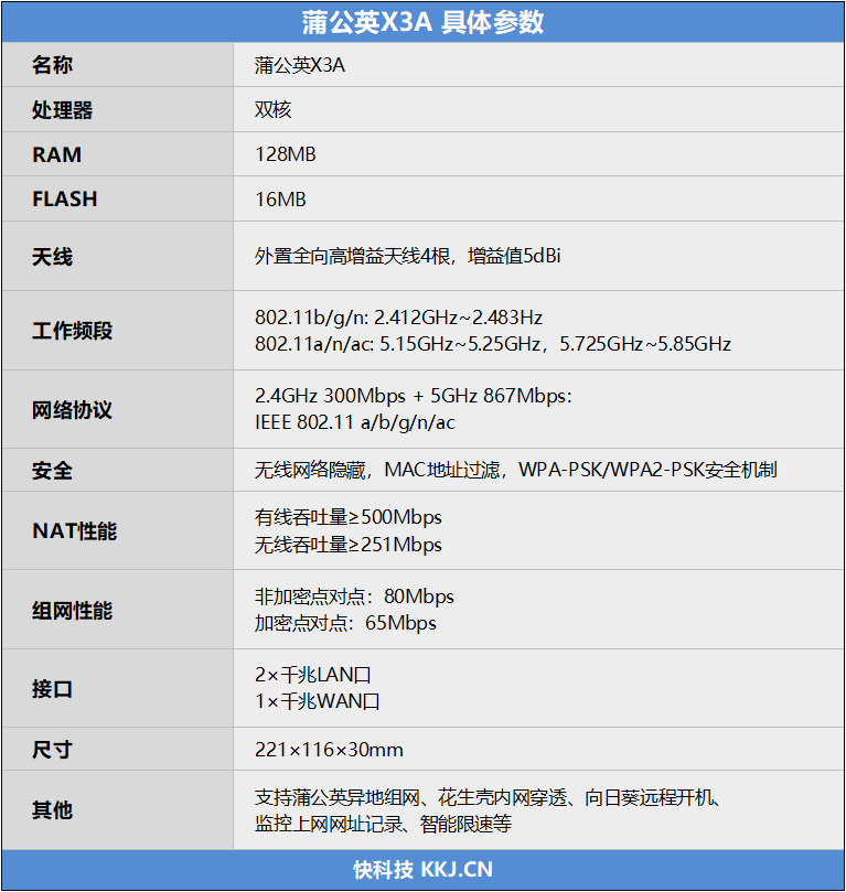 从硬件配置开始,双天线 2. 4G+2天线5G Wi-Fi 提供总连接速度高达1 200兆字节、1千兆瓦广域网和2千兆瓦局域网,带宽既满足家庭内外的需求。