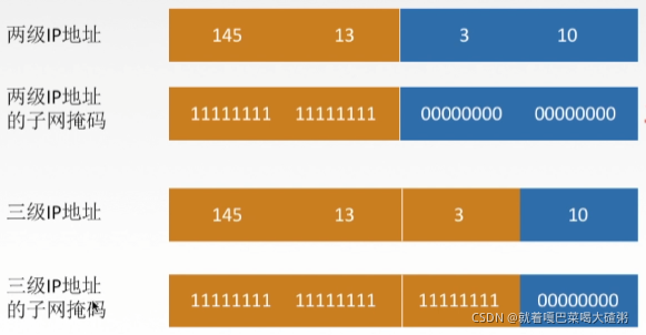 网络编号 1 指定给子网遮罩, 主机编号为零, 子网遮罩被一个一个地指定到 IP 地址, 并获得子网地址 。