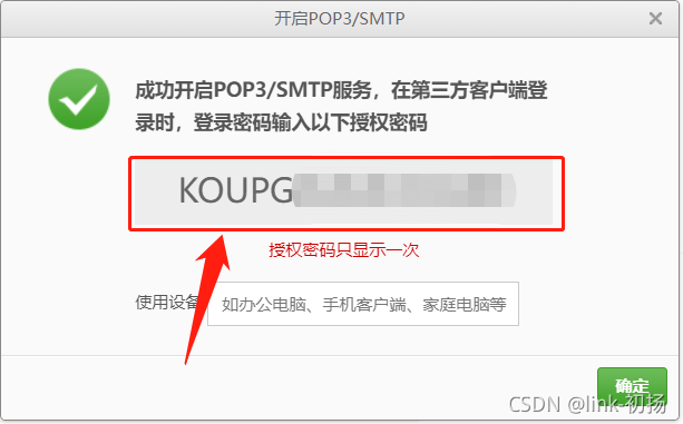 要记录此授权密码, 请使用它访问 smtp 服务器, 而不是账户代码!
