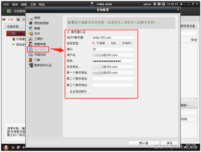 几年前对代码进行了测试,仿佛一切都很好。 163个邮箱系统是否已经修改,以便不再使用过时的数据格式? 因此,对于海康的视频监控客户来说,客户可以免费下载并免费使用它,只要系统配置了邮件发送功能: