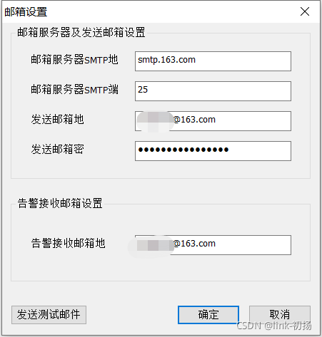 在上述接口中,输入163 SMTP 服务器地址,使用默认的 25 个端口,填写发送邮件地址和发送信件的密码。如果您按下发送测试邮件按钮, 电子邮件发送不成功 。。