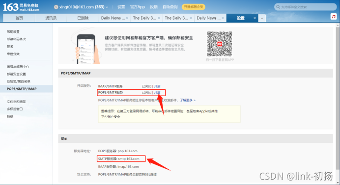 4. SMTP服务,用于163个发送邮件的电子邮件账户