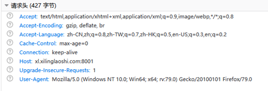 User-Agent: 第一个提供了功能字符串,使网络协议对等点能够识别启动请求的用户代理的程序类型、操作系统、软件开发器和版本号。