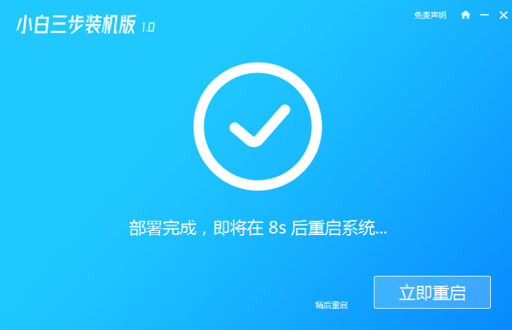 4. 我们的系统部署完毕后,程序将通知我们,我们需要重新启动计算机,并将促使我们点击网页立即重新启动。