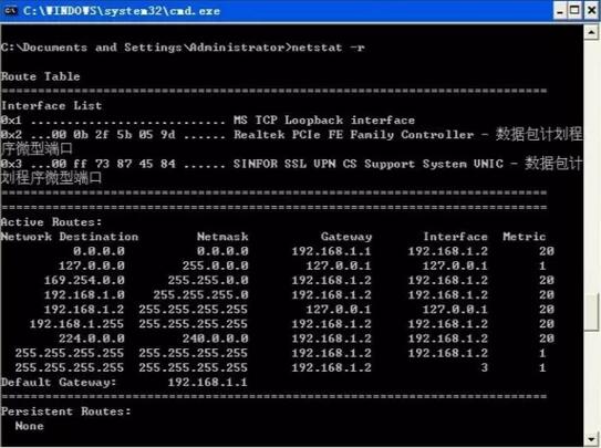 4 netstat- r:- r 选项显示路线表信息,与根打印命令显示的信息相比。显示当前有效的连接和有效路径。