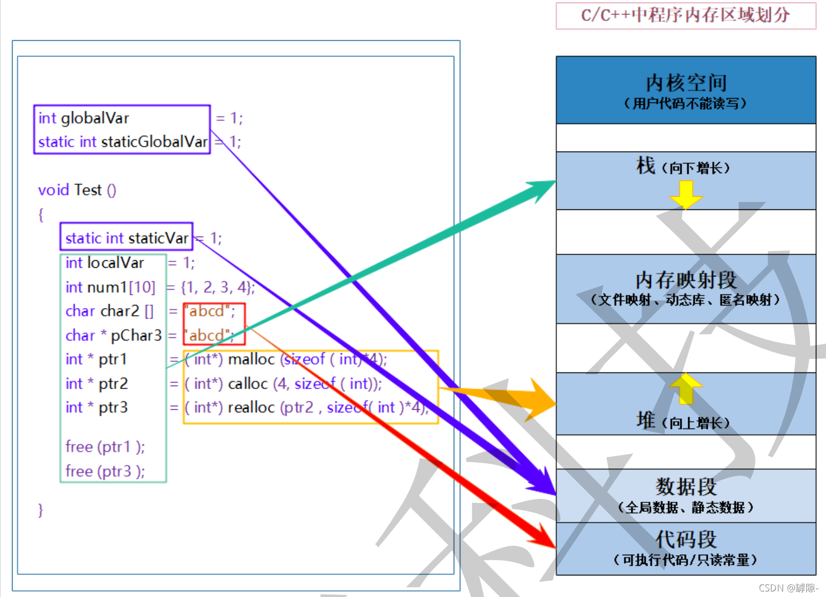 数据段(静态区) 1 包括全球变量和静态数据。