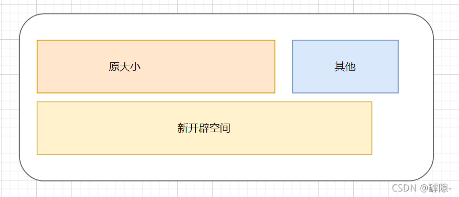 当原始空间之后空间不足时,通过在要使用的堆叠空间上再找到一个适当大小的连续空间并复制原始内容来扩展空间。这种方法产生一个新的内存地址。