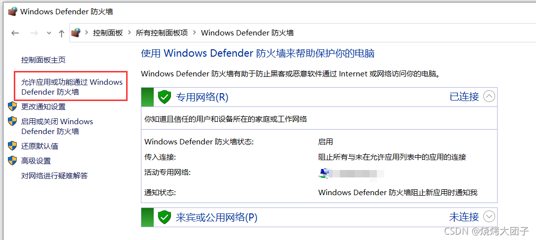 第2步:当您点击时, 选择“ 允许在 Windows Defence 防火墙上使用 Approach 或函数 ” :