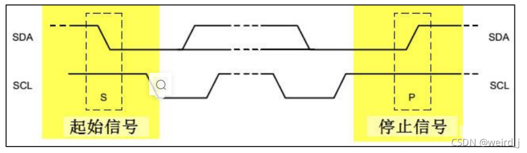 当SCL线高时,SDA线从高转到低,表示传输开始。