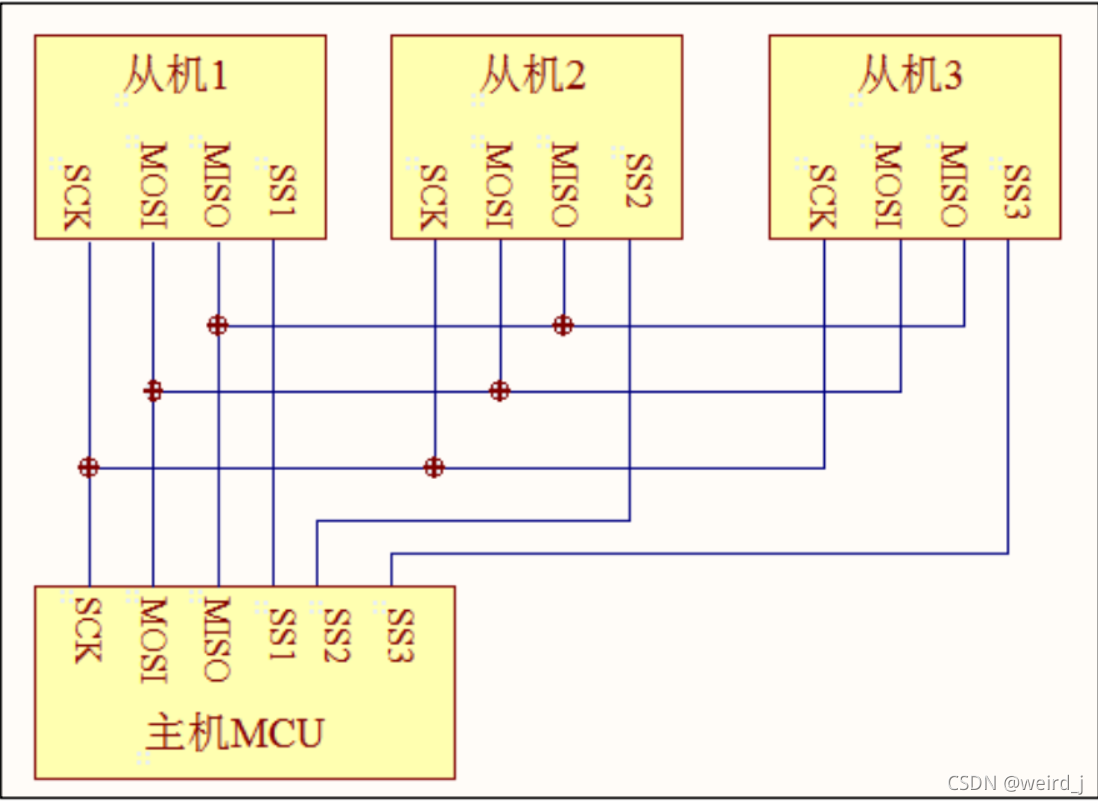 SPI使用MOSI和MISO信号线发送数据和SCK信号线以同步数据。