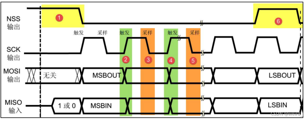 我们正在准备与主机互动 NSS信号已经从低向高 在图的6点, 信号SPI通讯的结束。