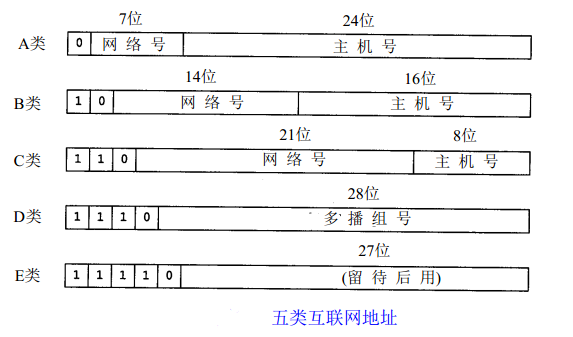 每个因特网接口都需要一个单一的因特网地址(又称IP地址)。 IP地址32位。 因特网地址不使用平坦的地址空间,例如IP地址有一定的结构,因特网地址有五种不同的因特网地址格式,具体如下: