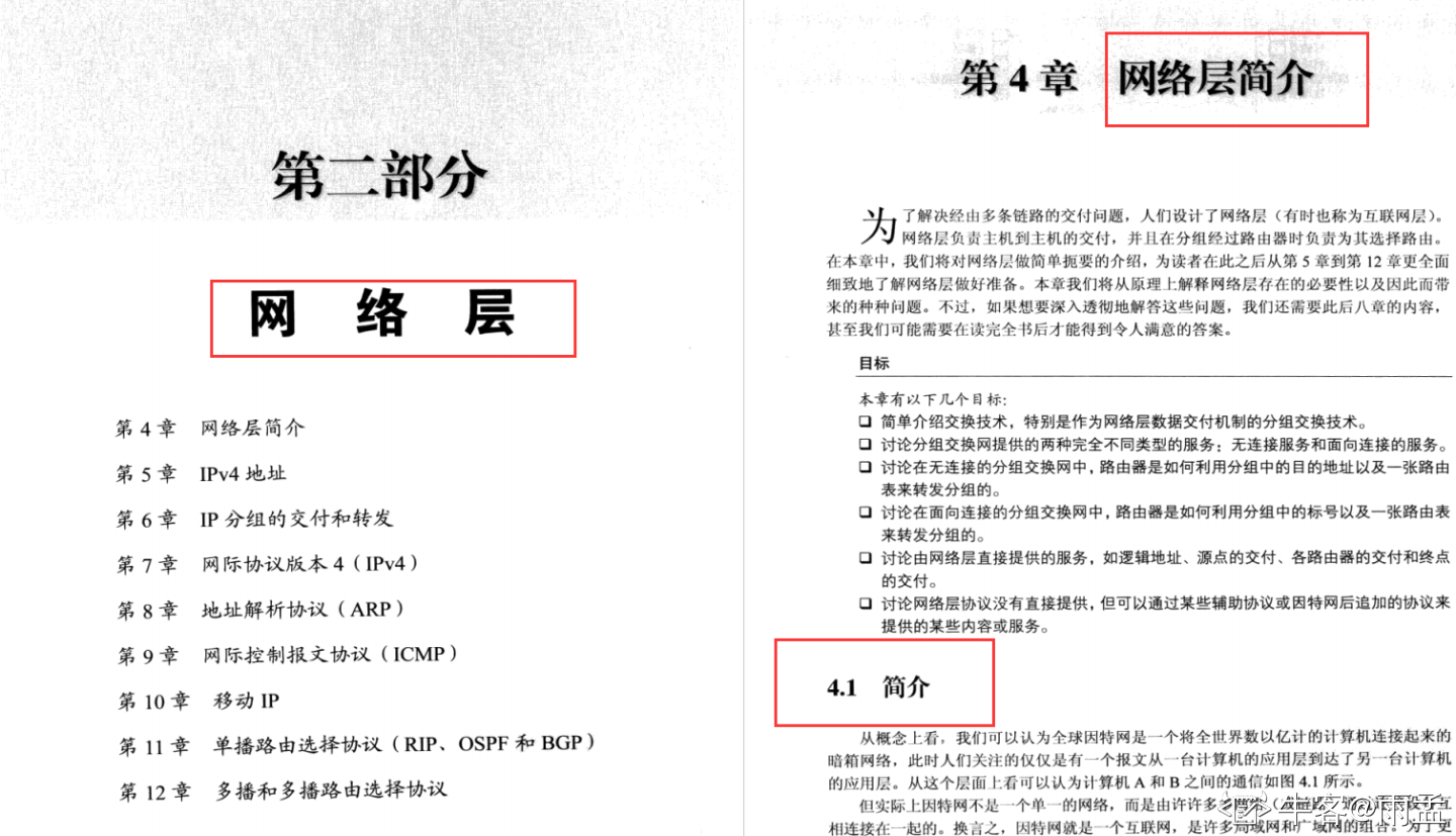 第二部分(网络层)涵盖IPv4定位技术、IPv4协议、所有IPv4协议的支持协议以及单一和多路线选择协议(第4-12章)。