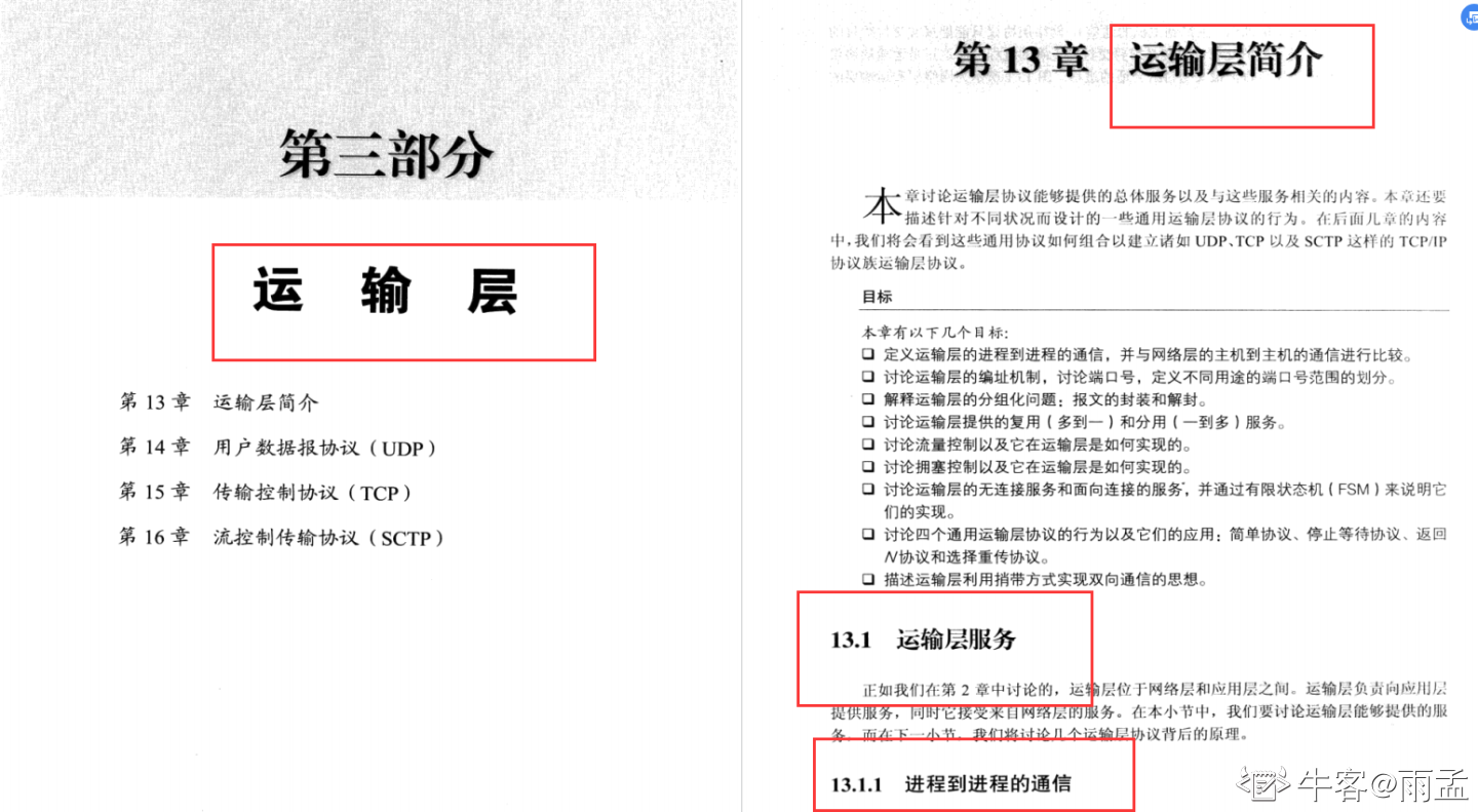 第三章(运输层)由第13-16章组成,介绍了运输层的总体概念(第13章),随后对三个运输层协定进行了彻底审查:联合发展方案、TCP和SCTP(第14、15、16章)。