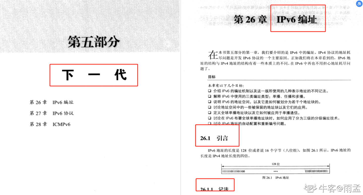第五部分(新一代)由第26至28章组成,介绍了下一代知识产权协定、IPv6现场技术(第26章)、IPv6协议(第27章)和ICCMPv6(第28章)。