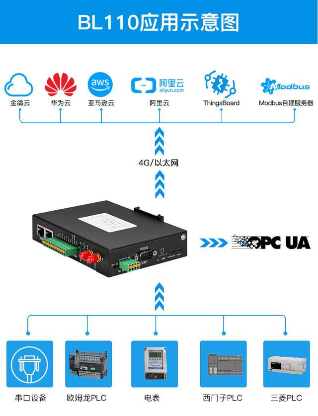 10) 为支持OPC UA客户,可同时与许多PLC或触摸显示器进行远程通信。