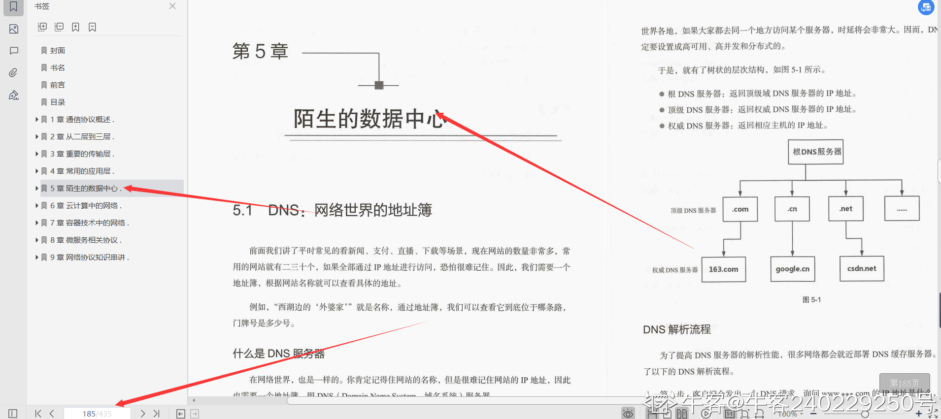 - DNS是网络的地址簿,它可以使用域名搜索地址,因为域名是用树结构排列的,因此DNS服务器使用矩形技术搜索,可以缓存以提高效率。