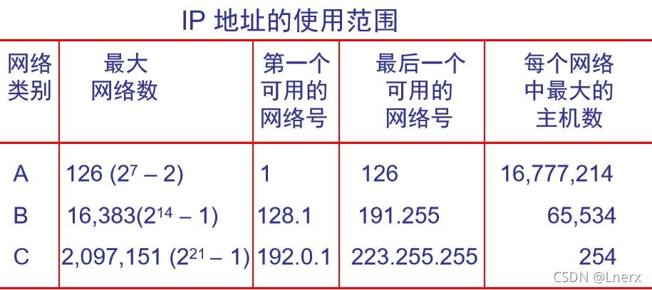 IP地址 ::= {<网络号>, <子网号>, <主机号>} (4-2)