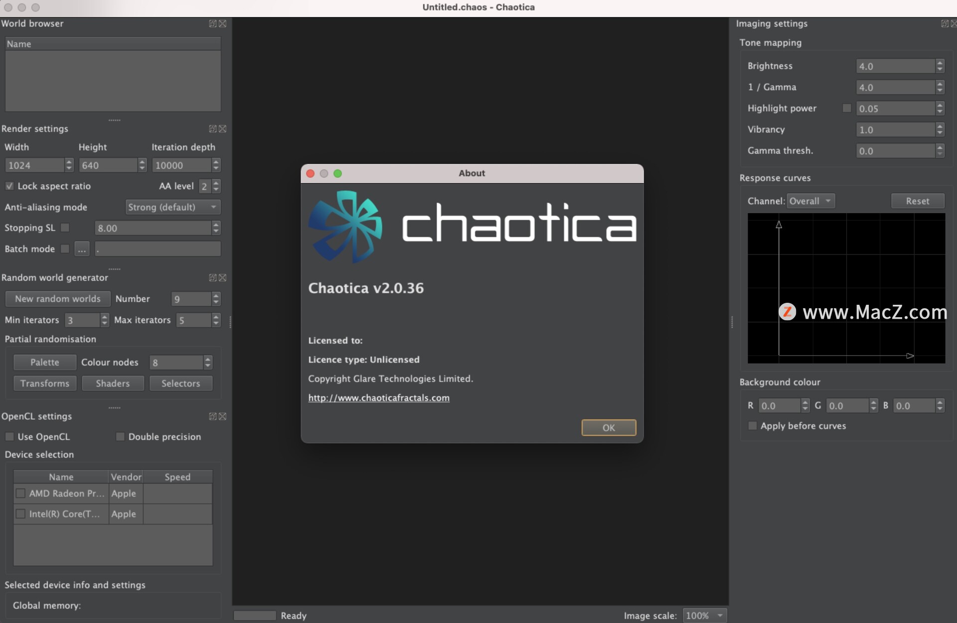 Mac的Chaotica是分形艺术的视觉设计程序。