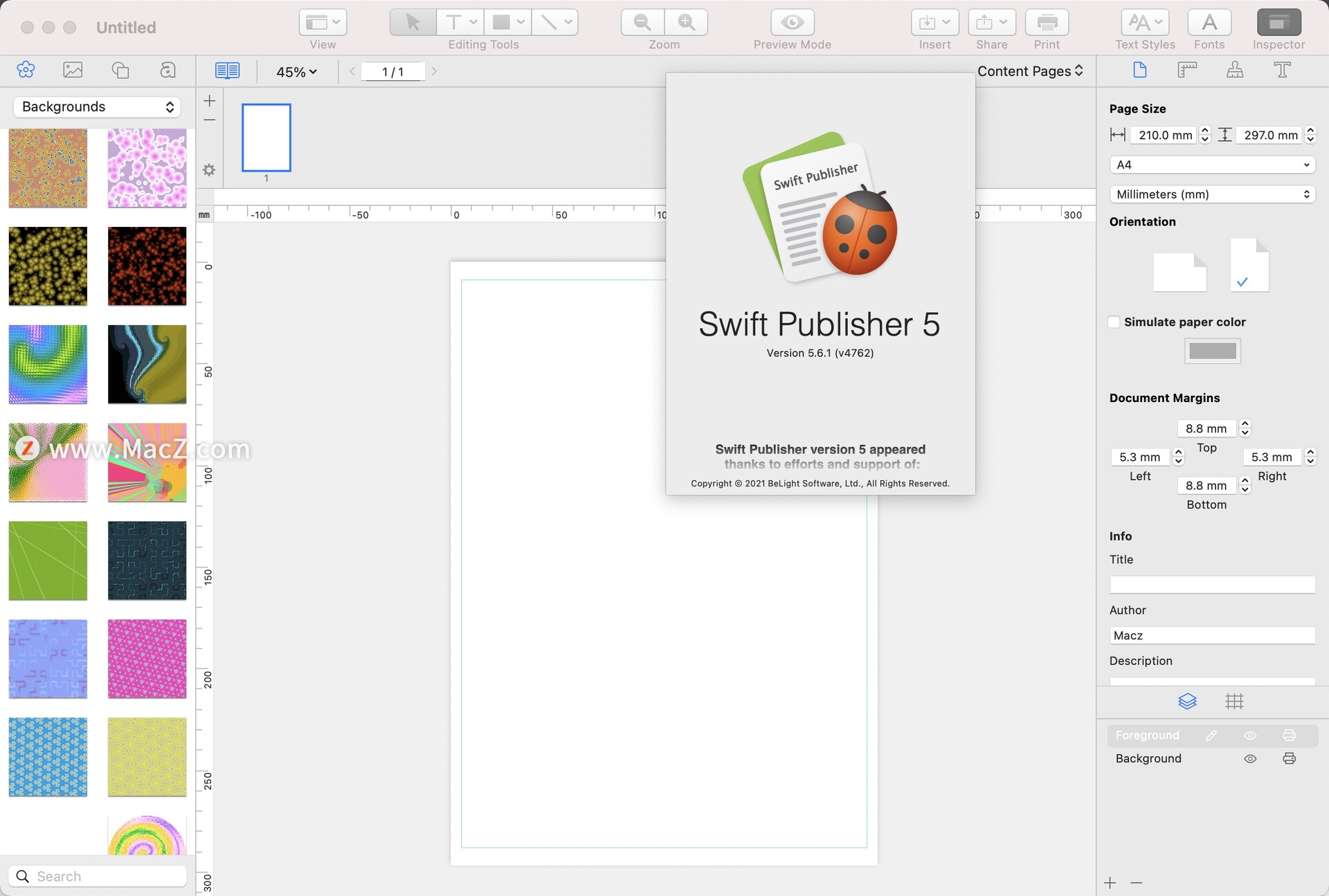 Swift Publicer 5 Mac是Macintosh的桌面设计和编辑应用程序,包括传单、简报、日历和小册子模板,能够提供独特的页面布局,设备齐全,可以印刷和出口。