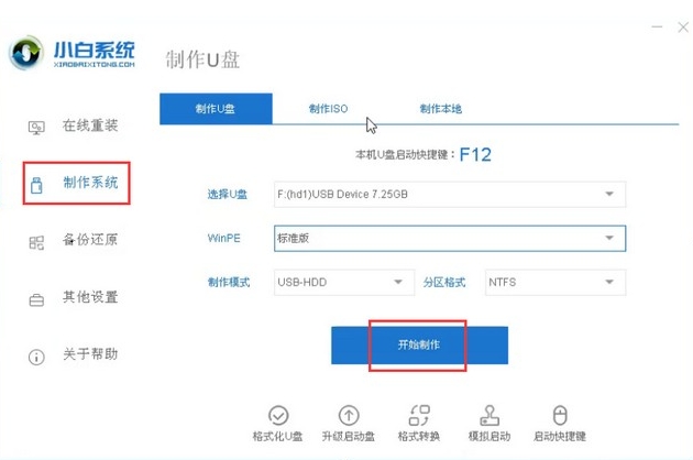 ,然后转到 " 生产系统 " 接口,等待系统识别磁盘,然后单击 " 开始生产 " 。