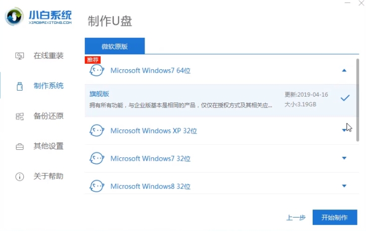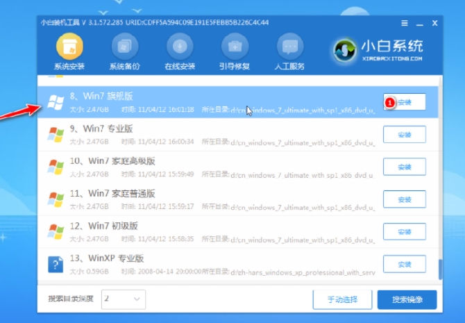 使用小白板工具来选择安装的系统,然后选择 " 磁盘C " 作为目标分区。