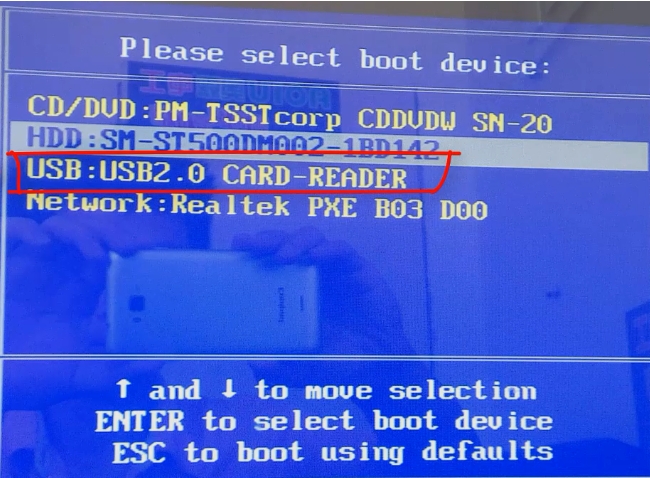 7.u-disk 访问计算机,该计算机必须重新加载,然后通过快速按下启动热密钥重新启动计算机,以进入 Q- start 接口,并选择与 USB 连接的驱动器启动返回密钥。