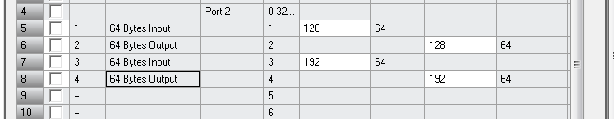 考虑以下配置:输入区域从 i68 开始,输出区域从 q64 开始。