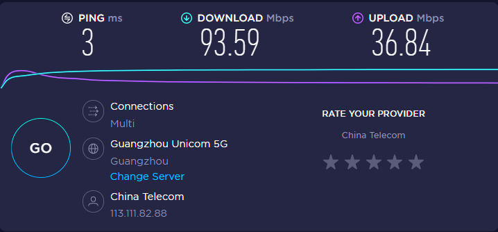 AX300 Pro路由器使用高速IPQ5018总芯片,其双核心为 1.0GHz CPU+ 单核1.0GHz NPU,这是目前市场上以相同价格在市场上更为流行的解决方案之一,在稳定性和力量方面表现良好。 第一个测试是线速,而雷雷所在的租房只有100兆克宽带,这与AX 300 Pro无关。