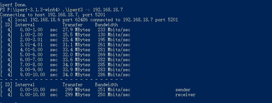 由于设备门户数量有限,微型地雷正在“完全无线”环境中评估内部网络传输速度。 最初,使用iPerf3来构建内部网络测试环境,两个装置的平均传输速度为33MB/s,两台计算机都与160兆赫5GHz Wi-Fi 6网络连接,达到250Mbps。