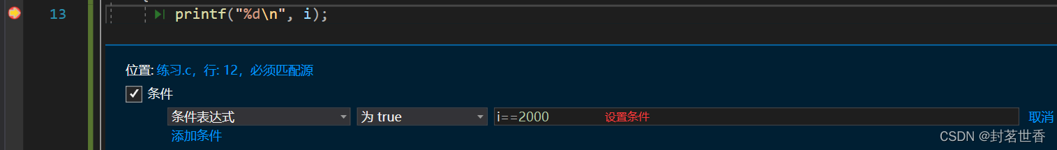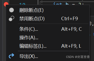 当我们使用鼠标右键时,我们可以有条件地编辑断点。