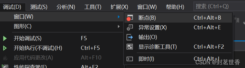 当我们击中 ctrl+F5 时,我们建立断点,但程序不会在断点停止;相反,它们会继续运行。