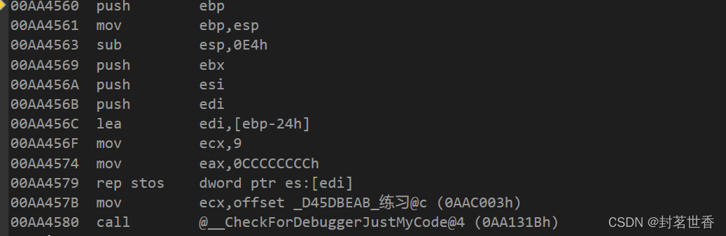 当我们击中F5时 箭头向这个断点移动 并开始调试