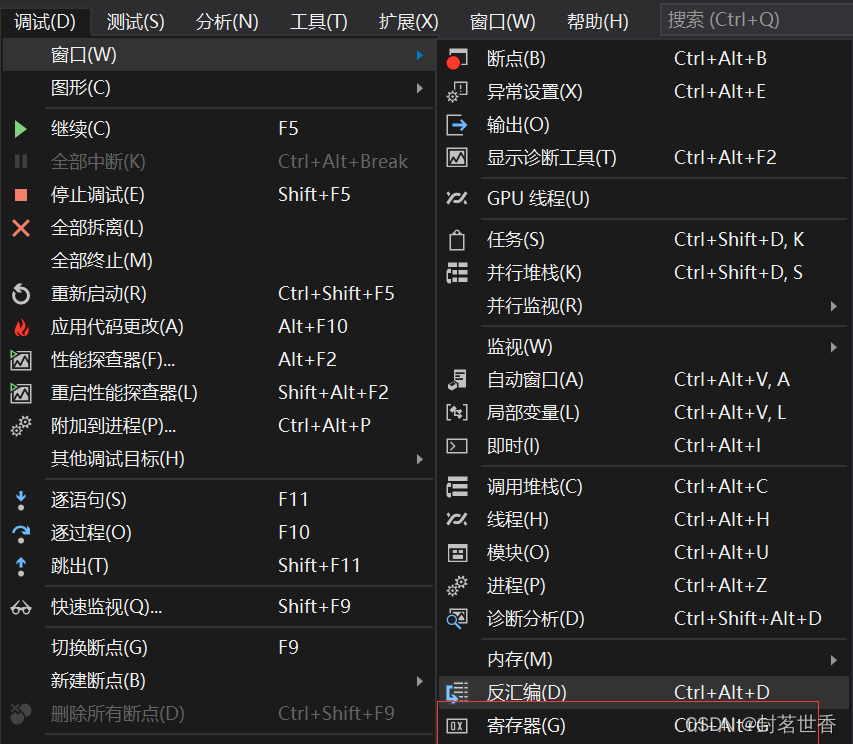 使用Debug-Window-存储库检查当前操作环境中登记册使用情况的信息。![]()