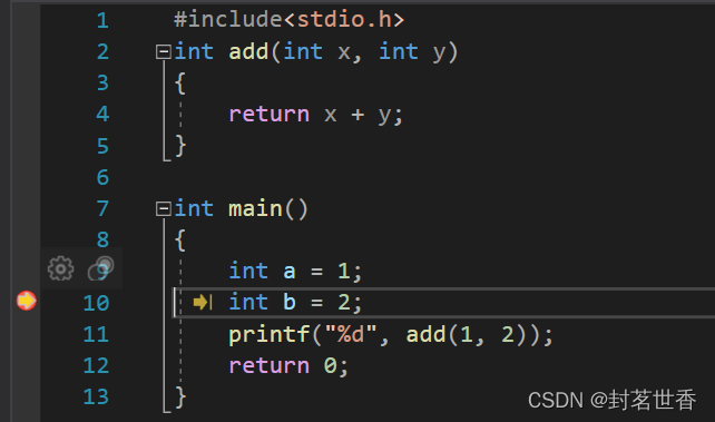 当我们打F10时, 程序会在单一的语句中被调试, 但我们无法访问此函数 。