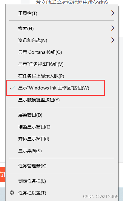 第1步:右键单击菜单栏空格并选择 Windows 墨水区域。