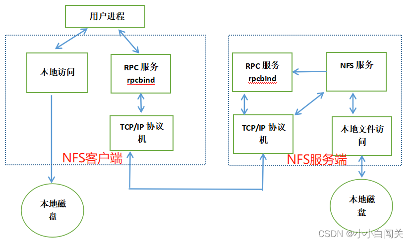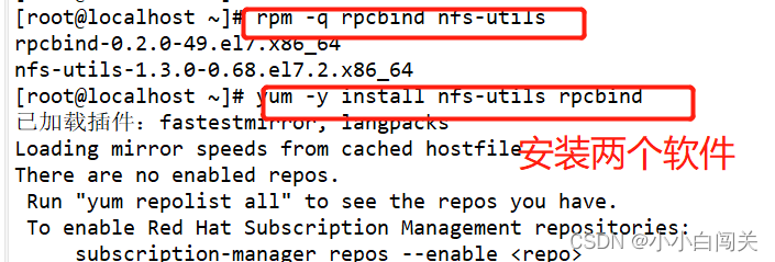 为了完成远程到地方的绘图进程,国家空间局服务的实施依赖于RPC(远程处理呼叫、远程程序呼叫)机制,因此,必须安装nfs-utitls和Rpcbind软件包,提供NFS共享服务,用于国家空间局共享出版和访问,以及RPC支持。
