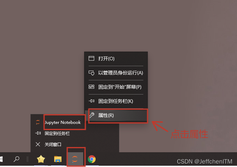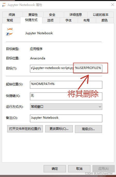 右键单击 Jupyter 笔记本, 并选择属性。 更改目标和列中的目标文件夹位置 。