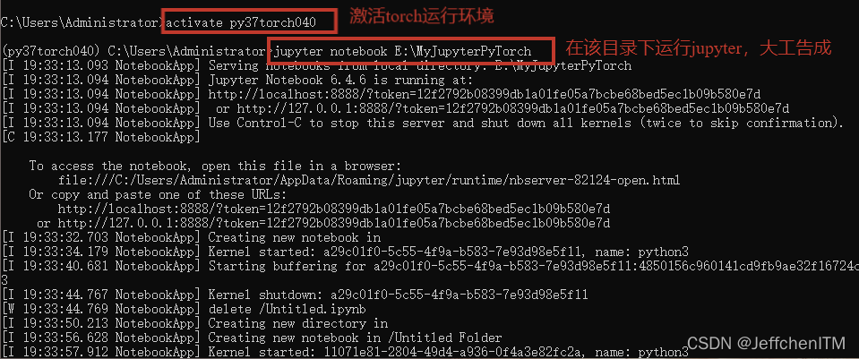 2 转到 jupyter 笔记本文件夹目录, 按 Enter 键启动 jupyter, 生成的文件保存在文件夹中 。