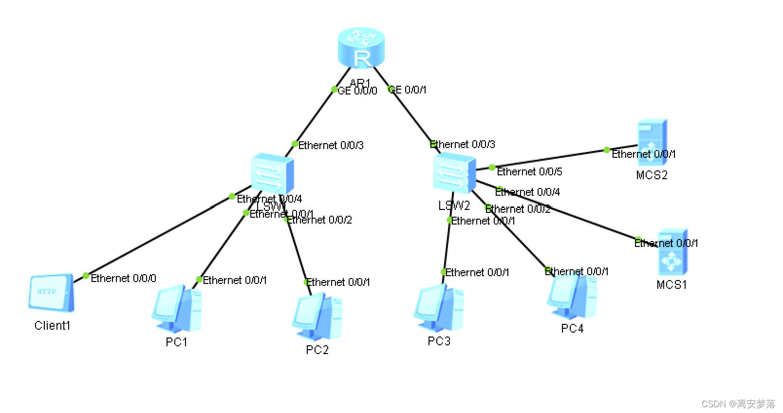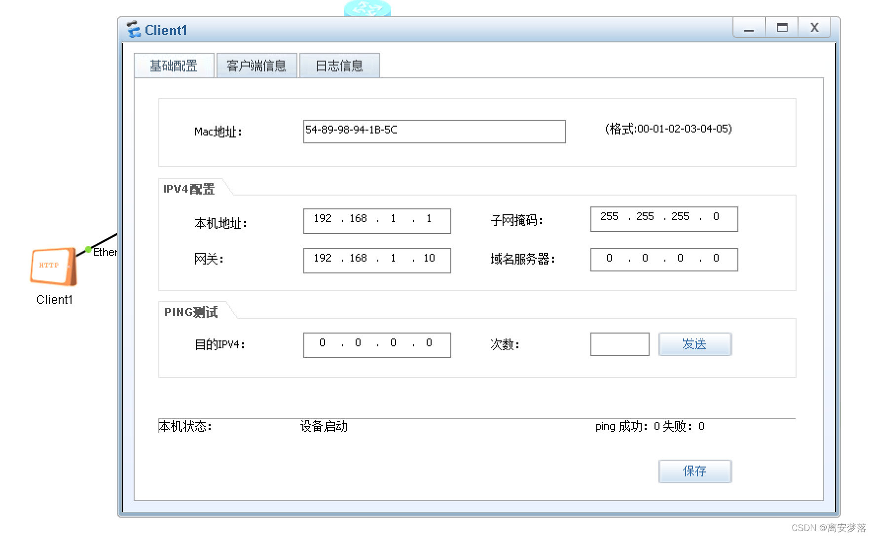 路由器 IP 定义后,即为客户端和两个服务器配置,如图所示: