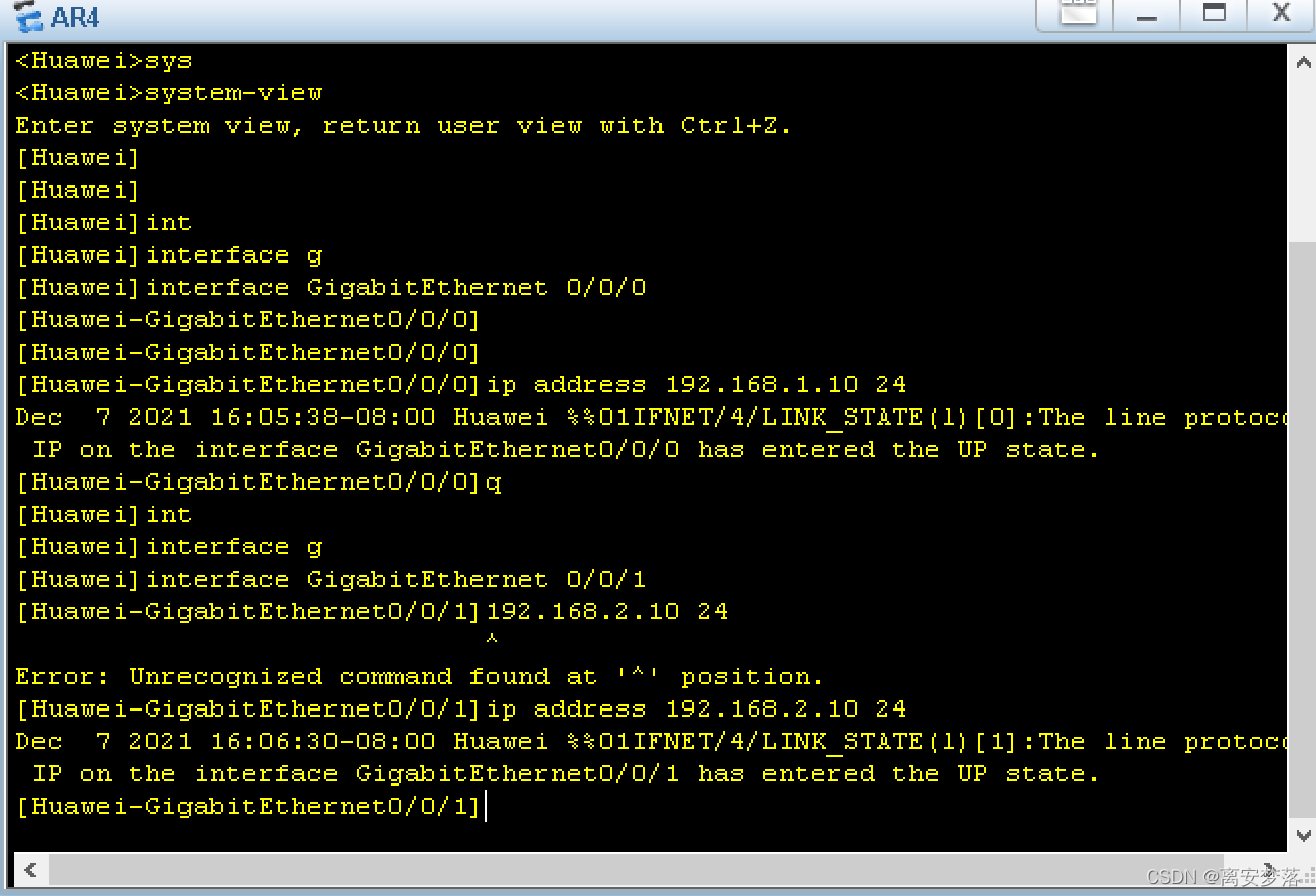 [Huawei-GigabitEthernet0/0/0]quit 退出