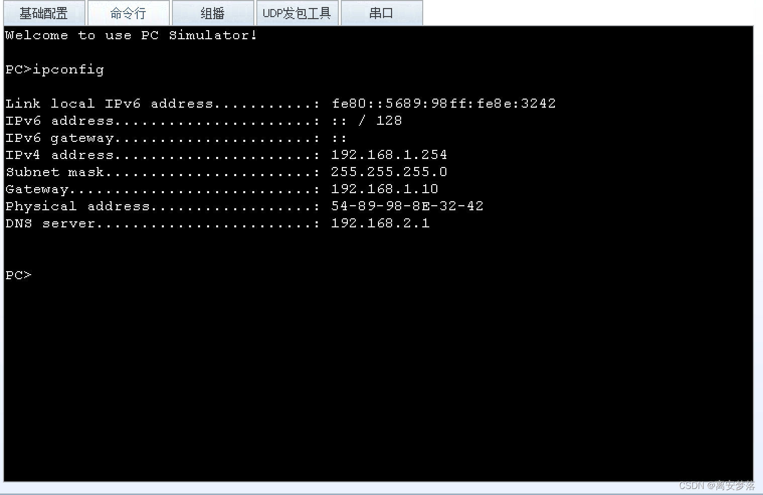 当路由器启用 DHCP 时, PC 可以自动访问 IP 地址。 如果您想要搜索 IP 地址, 您必须使用命令行, 如图所示 :