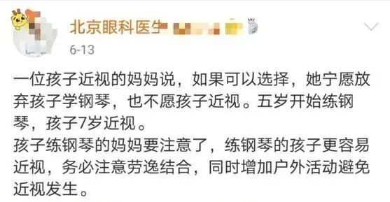 专家在发现豆子由于钢琴练习而近视后作了答复。