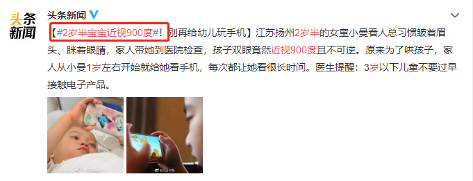 2岁半的女童几乎可以看见900度,是站不住脚的,因为她们从大约一岁起就长时间盯着手机看。