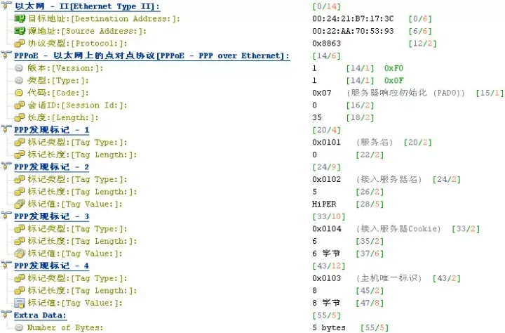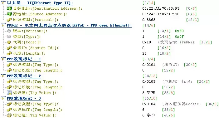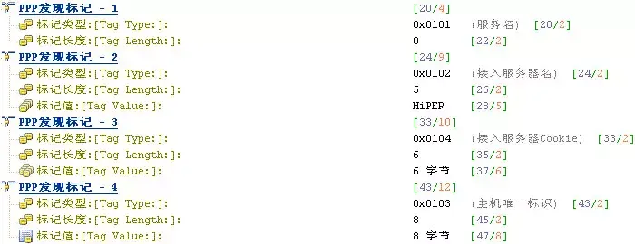 对于在不相容阶段的PPOE数据报告,其净载荷可能含有零或更多标记,实际上与PP配置参数选项非常相似,该选项也可以进行咨询。 与PPOE协议相比,没有详细的定义,而是初步的定义,因此在实践中,这一过程将因不同制造商的设备而异。