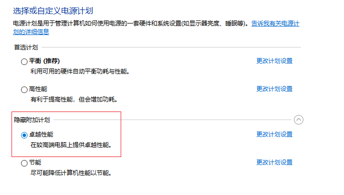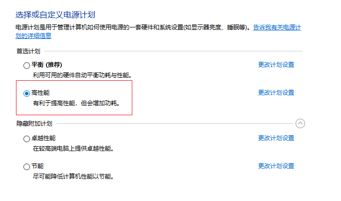 2. 在电力选项接口中,检查[高性能]或打开[未完成性能]。
