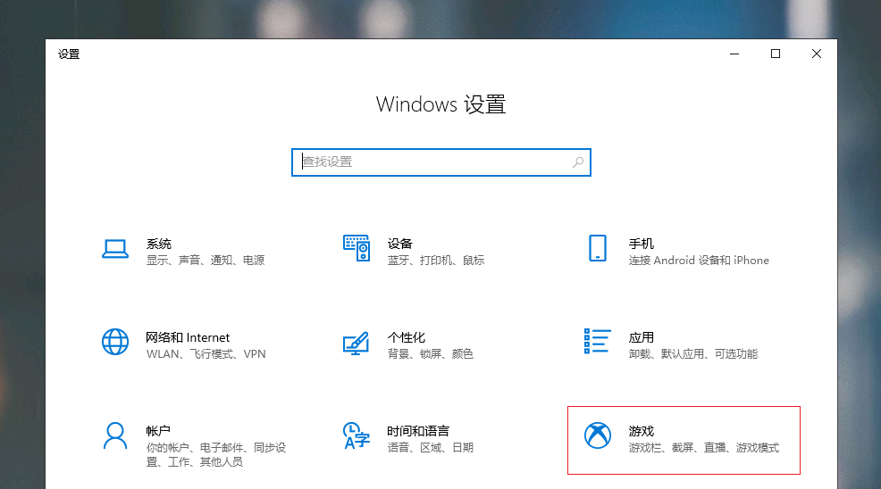 1, 在键盘上, 按 [win+i] 键可以打开选项界面, 并选择游戏条目 。