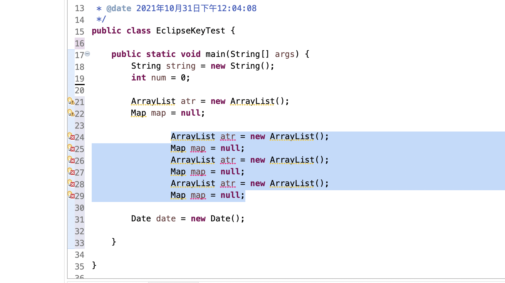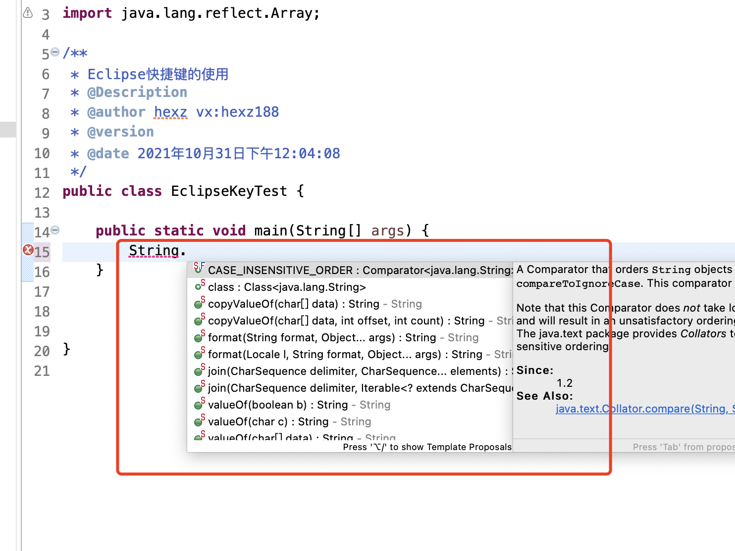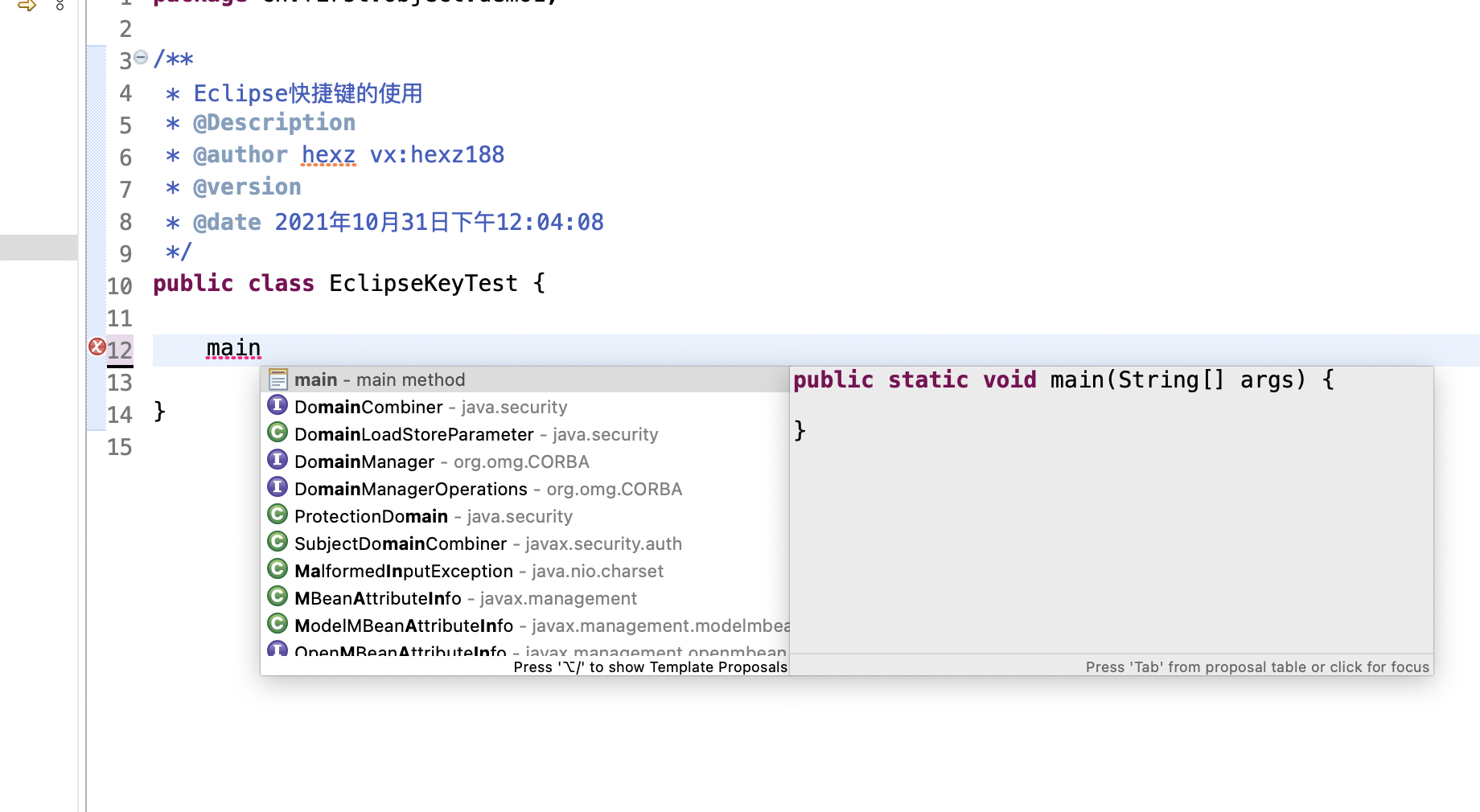 例如,当创建主要方法时,如果只写入主代码的一部分,而以下代码不键入,则此快捷键会直跳出来。