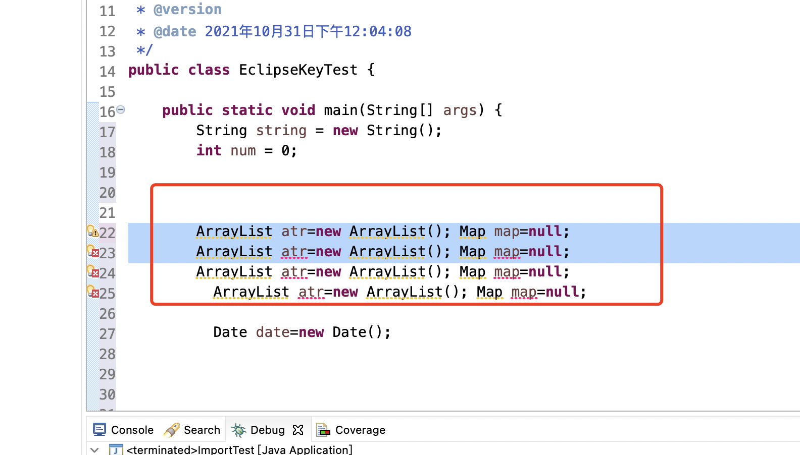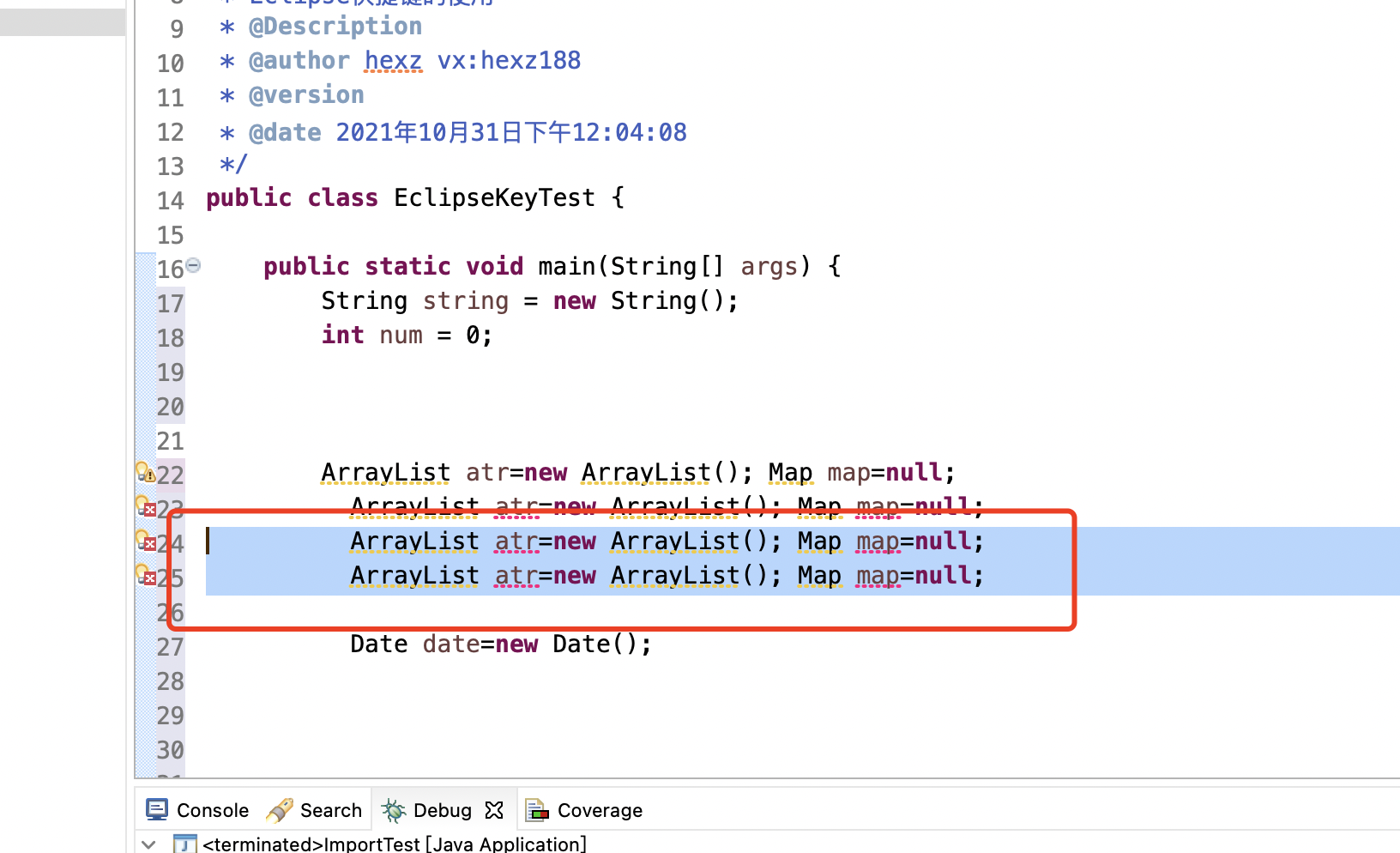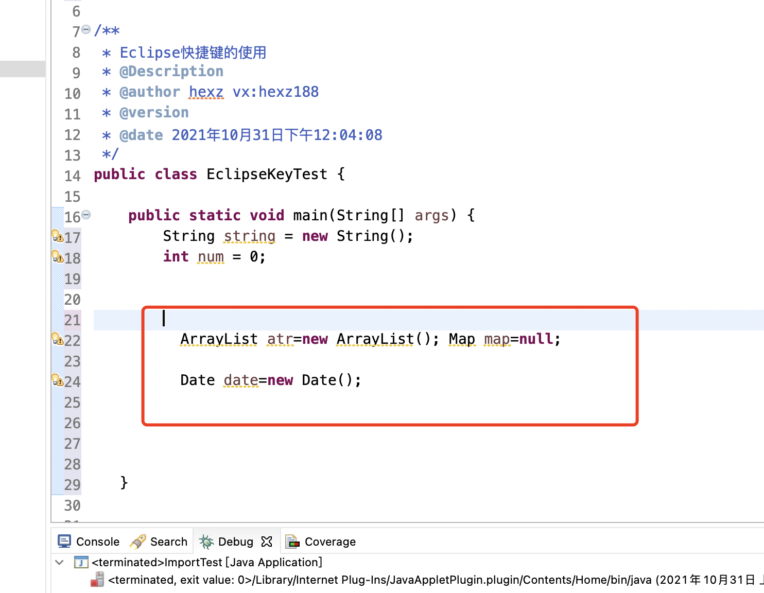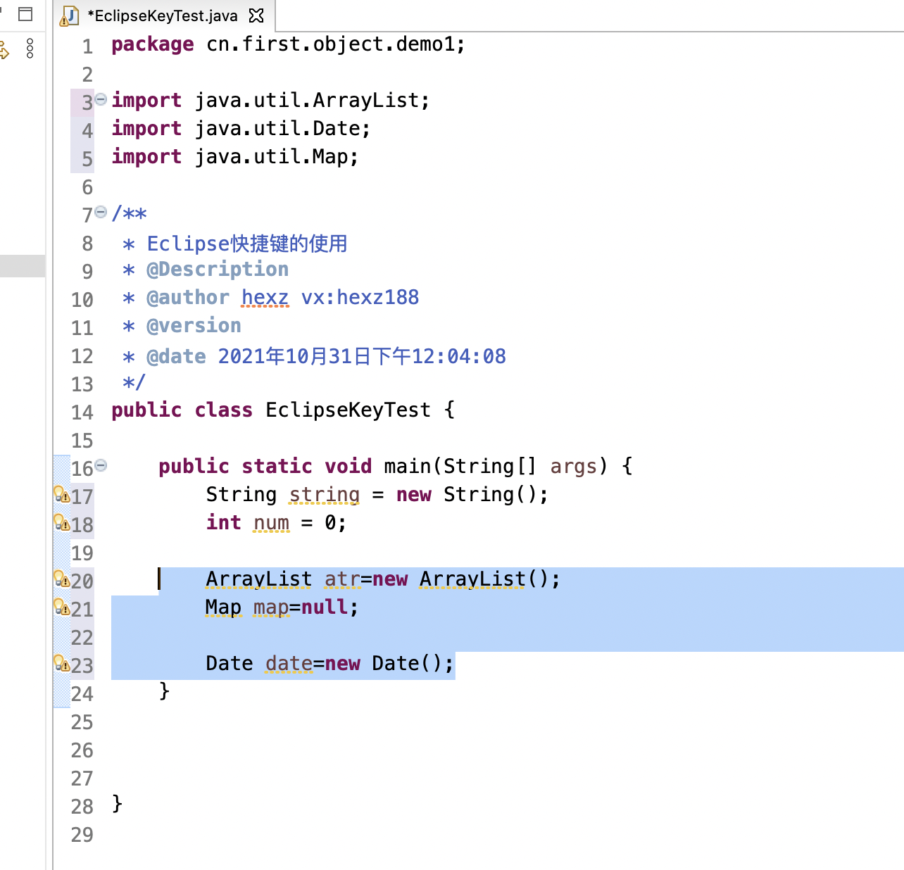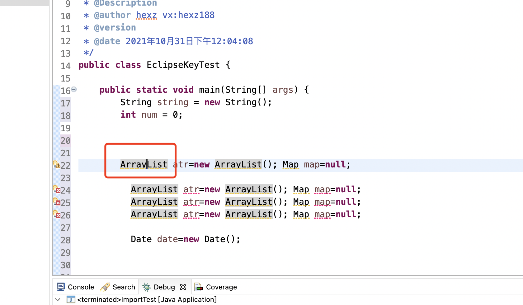 当我们引入许多不同种类的包件时,我们必须使用进口包件,为了提高编码效率,我们可能不是一对一的直接,我们可以使用捷径Ctrl+Shift+lettero来把它全部拿出来。